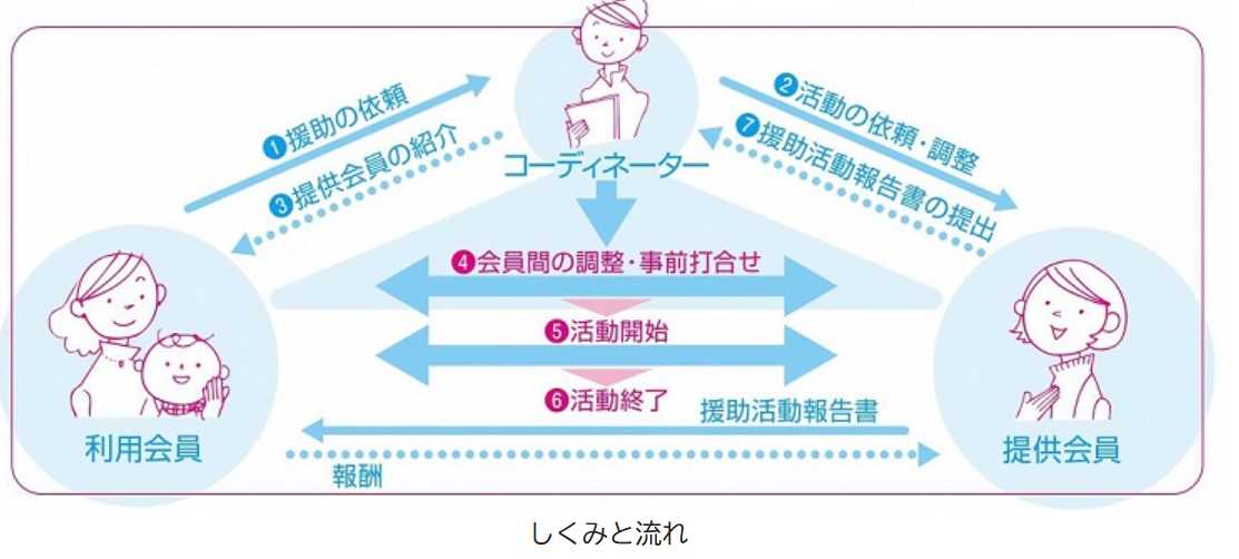 ファミリーサポートセンター(ファミサポ)は、地域で子育てを支援する会員制の相互援助組織です。